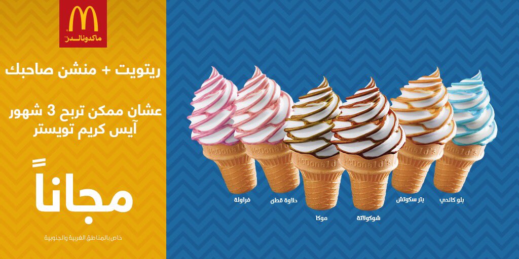 ماكدونالدز السعودية A Twitteren تخيل آيس كريم تويستر اللي تحبه لمدة 3 شهور مجانا شاركنا و ممكن تكون من الفائزين ماكدونالدز