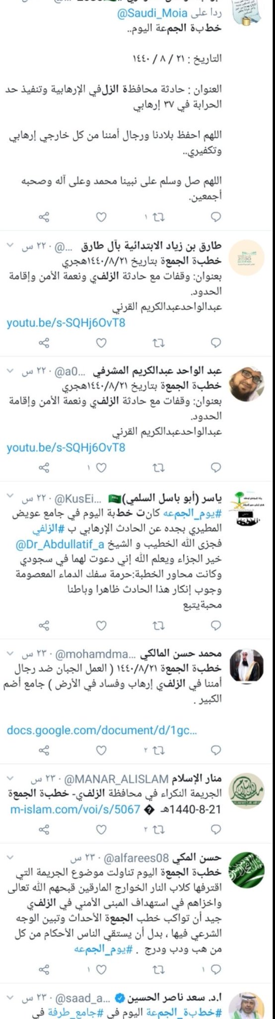 قناة بحار On Twitter عند البحث في عناوين خطبة الجمعة الفائتة ستجد مايثلج الصدر في حديث الخطباء عن العملية الإرهابية الفاشلة في الزلفي وتطبيق الحدود على الإرهابيين وهذه من آثار
